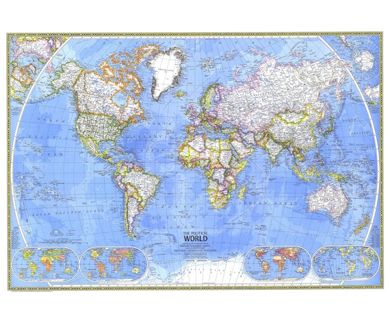 National Geographic Vintage 1975 World Map Fine Art Reproduction